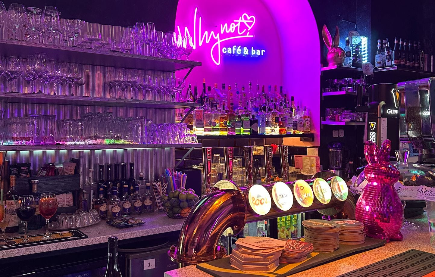 Le Why Not Cafe and Bar, avec sa terrasse animée face au Danube et son intérieur sombre illuminé de néons roses et de boules à facettes, se démarque à Budapest. Bien que la ville semble calme en ce lundi de Pâques, ce lieu emblématique de la culture queer hongroise bouillonne. Attablé avec une dizaine d’amis, Luis* déclare : « La Hongrie n’est pas du tout un pays homophobe. » Il ajoute, suscitant une vague de rires : « Ici, je pourrais sucer un gars dans la rue si je le voulais qu’il ne m’arriverait rien ! »