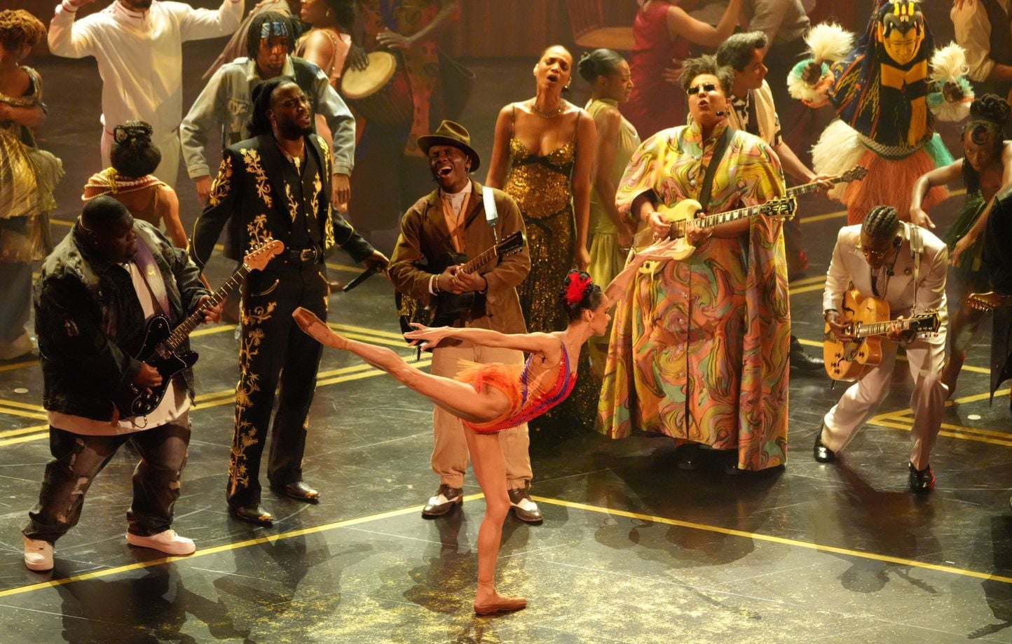 Miles Caton, qui joue le fils d’un pasteur passionné par la musique du diable, et l’auteur-compositeur-interprète Raphael Saadiq ont interprété I Lied To You, entourés d’artistes représentant toutes les époques de la musique noire, de l’Afrique de l’Ouest au hip-hop américain. Ont participé à cet hommage le musicien Shaboozey et la danseuse étoile Misty Copeland, qui a récemment subi une opération de remplacement de la hanche.