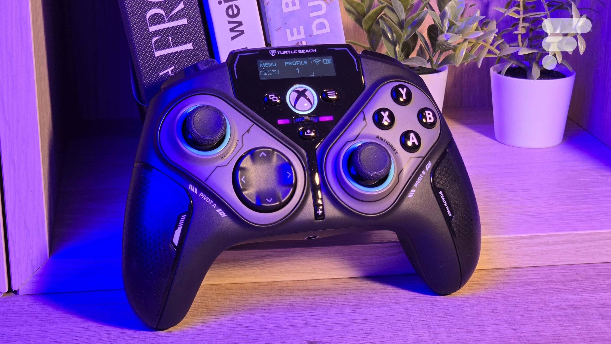 En dehors de la remise de 52 % proposée par Amazon, il est important de considérer la Turtle Beach Stealth Pivot comme une manette de milieu de gamme. La marque a fait un effort notable pour revendiquer un design qui s’éloigne des conventions habituelles des manettes Microsoft, mettant en avant ce petit écran au centre de la manette pour changer les configurations sans avoir à utiliser un logiciel.