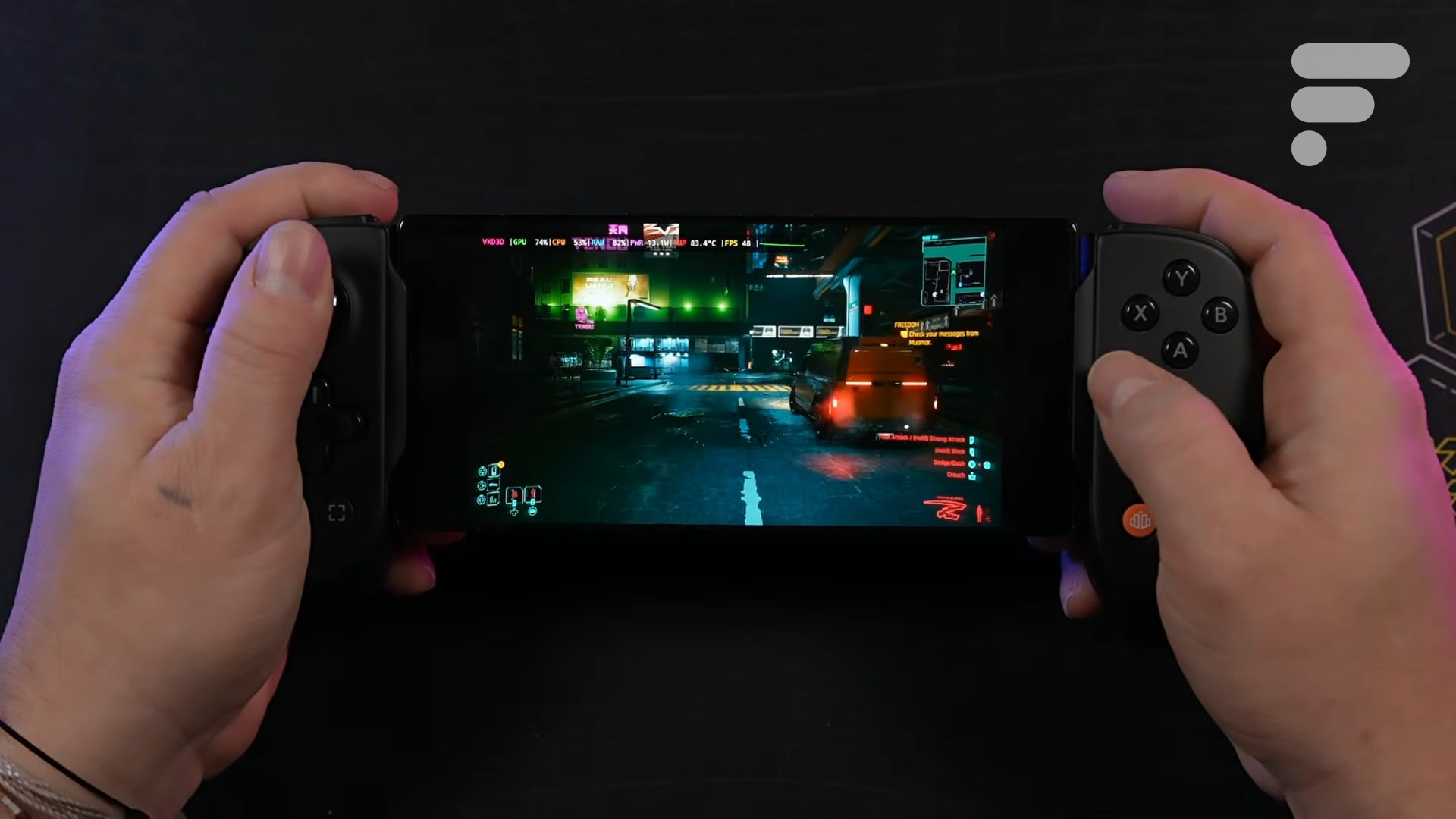 Il ne s’agit pas de jouer via des services comme Xbox Game Pass ou GeForce Now. Ici, il s’agit d’exécution native. Le youtubeur ETA Prime a publié une vidéo montrant Cyberpunk 2077 fonctionnant directement sur un smartphone Android.