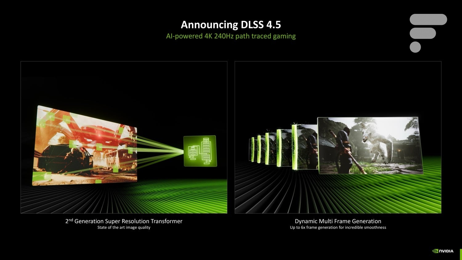 Après une année 2025 marquée par l’arrivée du DLSS 4, qui a introduit le modèle Vision Transformer et le concept de Multi Frame Generation (MFG) permettant de quadrupler le nombre d’images par seconde, Nvidia profite du CES 2026 pour présenter le DLSS 4.5.