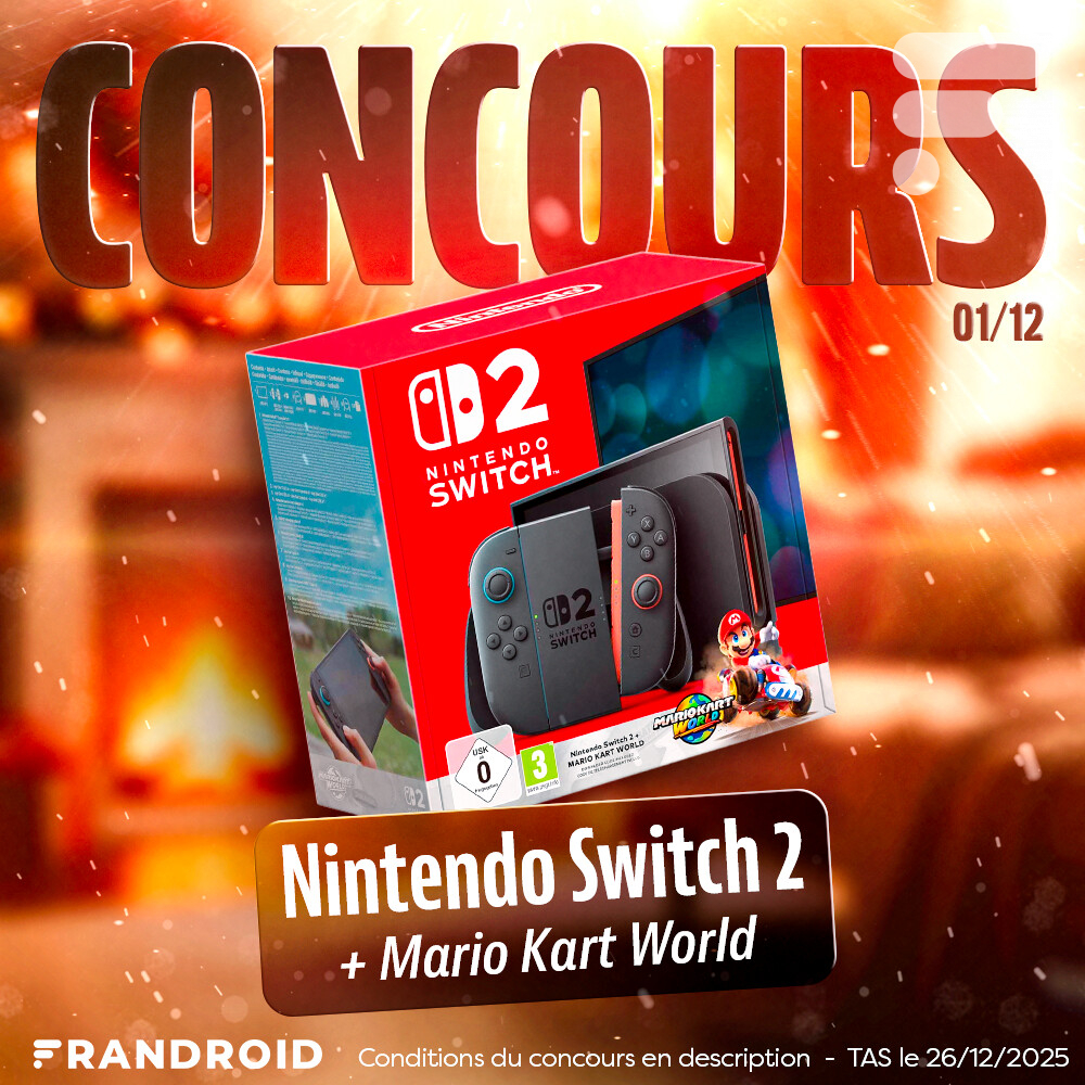 Le calendrier de l’Avent #FrandroidOffreMoi débute ce 1er décembre 2025 avec un pack comprenant une Nintendo Switch 2 et le jeu Mario Kart World. Le tirage au sort pour remporter ce pack aura lieu le 26 décembre.