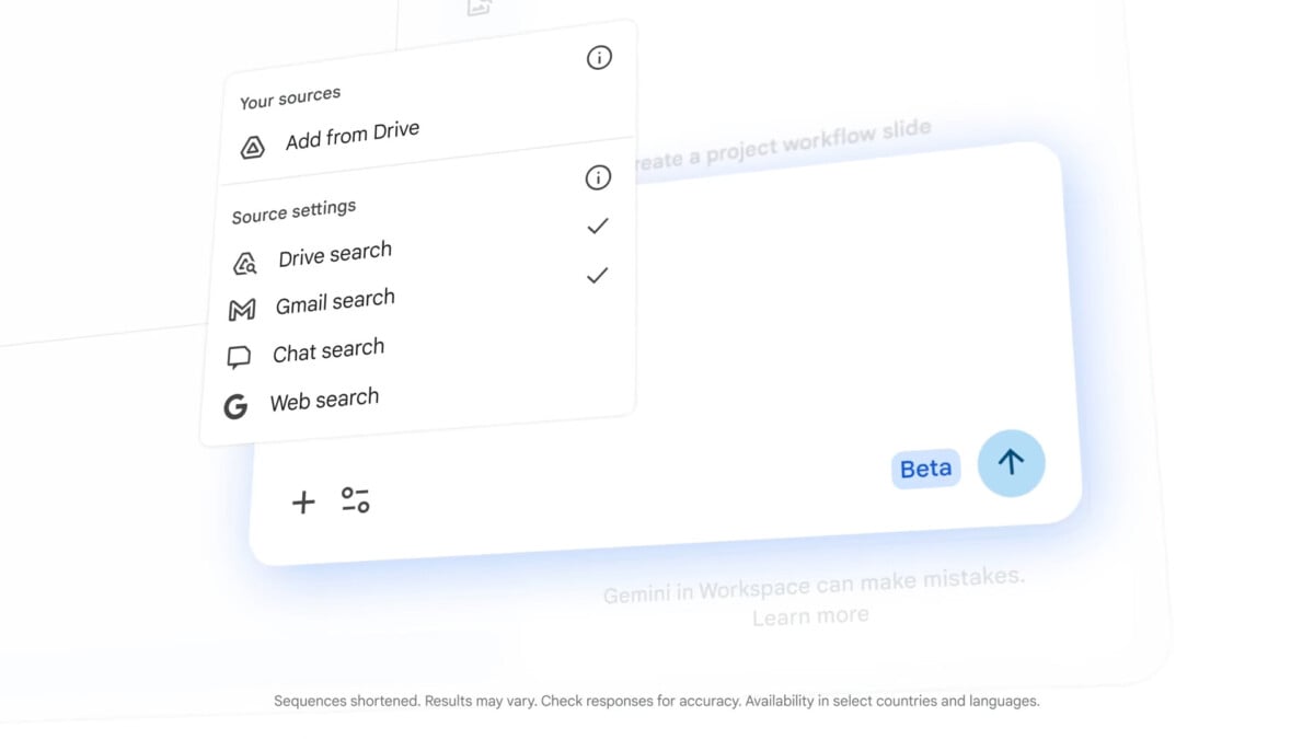 Toutes ces fonctionnalités seront d’abord mises en bêta dans Workspace, avec des limitations d’accès. Seuls les abonnés Ultra et Pro pourront en bénéficier. De plus, actuellement, seule la langue anglaise est prise en charge pour Docs, Sheets et Slides, tandis que les nouveautés pour Drive sont uniquement disponibles aux États-Unis pour le moment.
