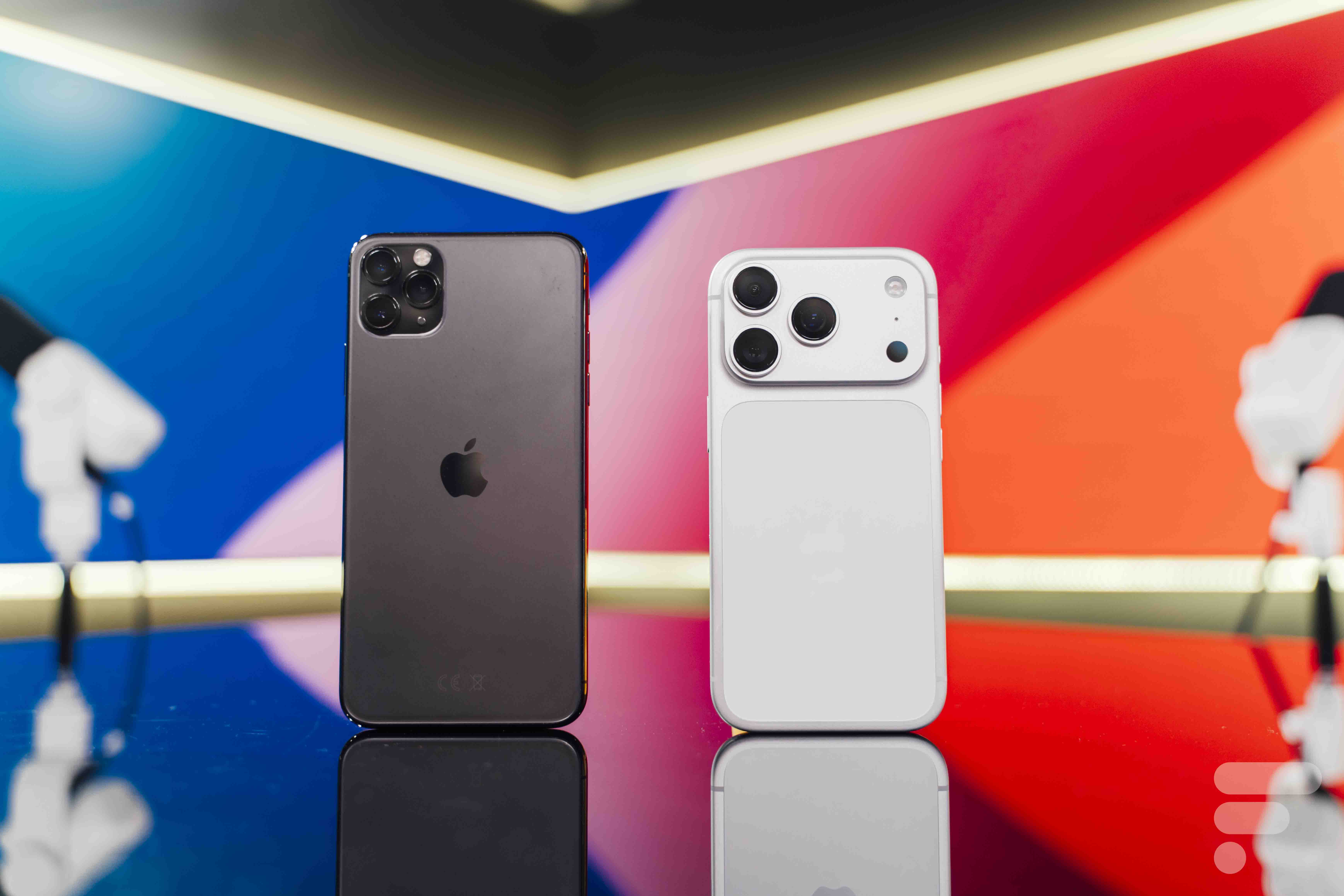 iPhone 11 Pro Max à gauche et iPhone 17 Pro à droite // Source : Frandroid