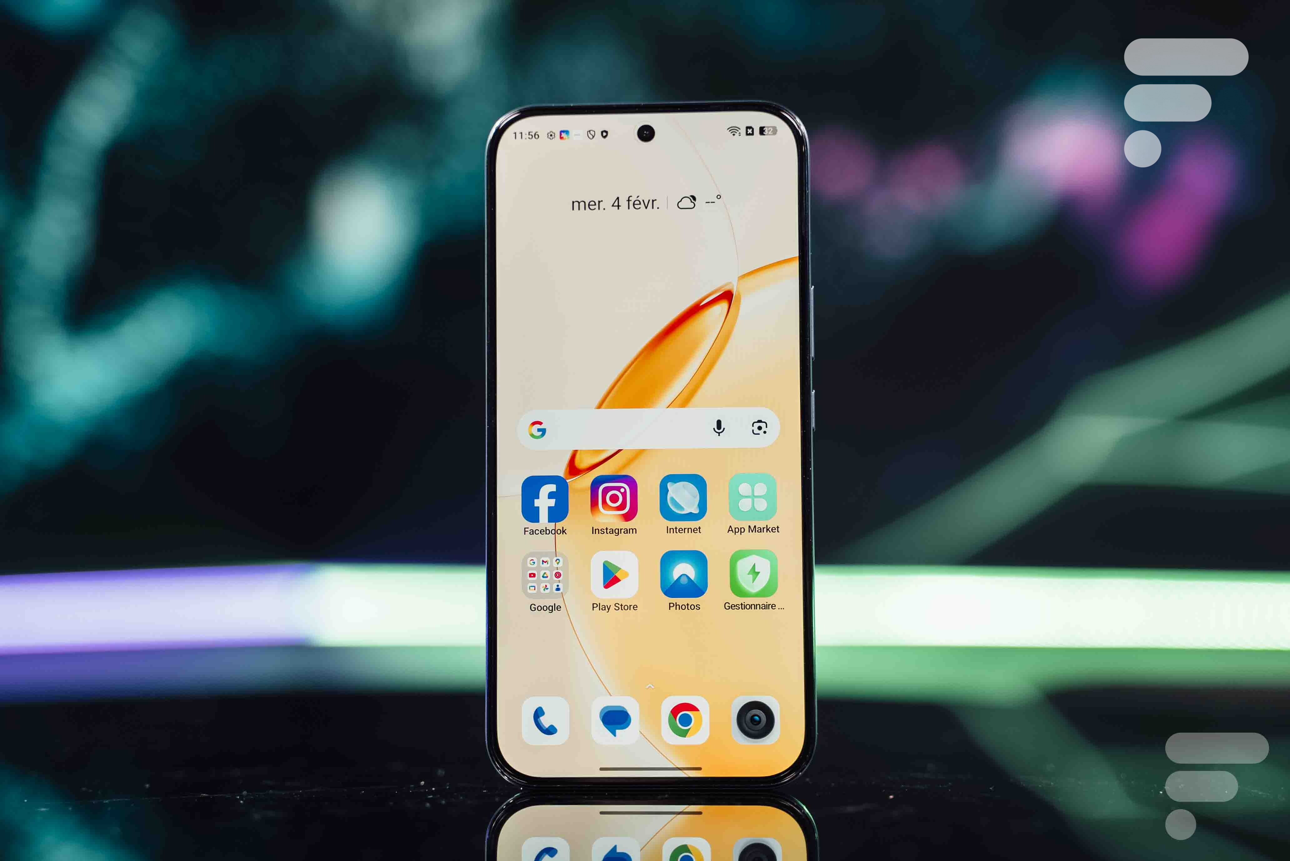 Concernant le processeur, il est équipé d’une puce Dimensity 7300-Max avec 8 Go de RAM et 256 Go de stockage. En comparaison, il est légèrement moins puissant que le Redmi Note 15 Pro de Xiaomi, qui utilise un Dimensity 7400 Ultra. Malgré cela, il reste adéquat pour un usage multimédia et bureautique classique. De plus, la montée en température est bien maîtrisée après une heure d’utilisation intensive.
