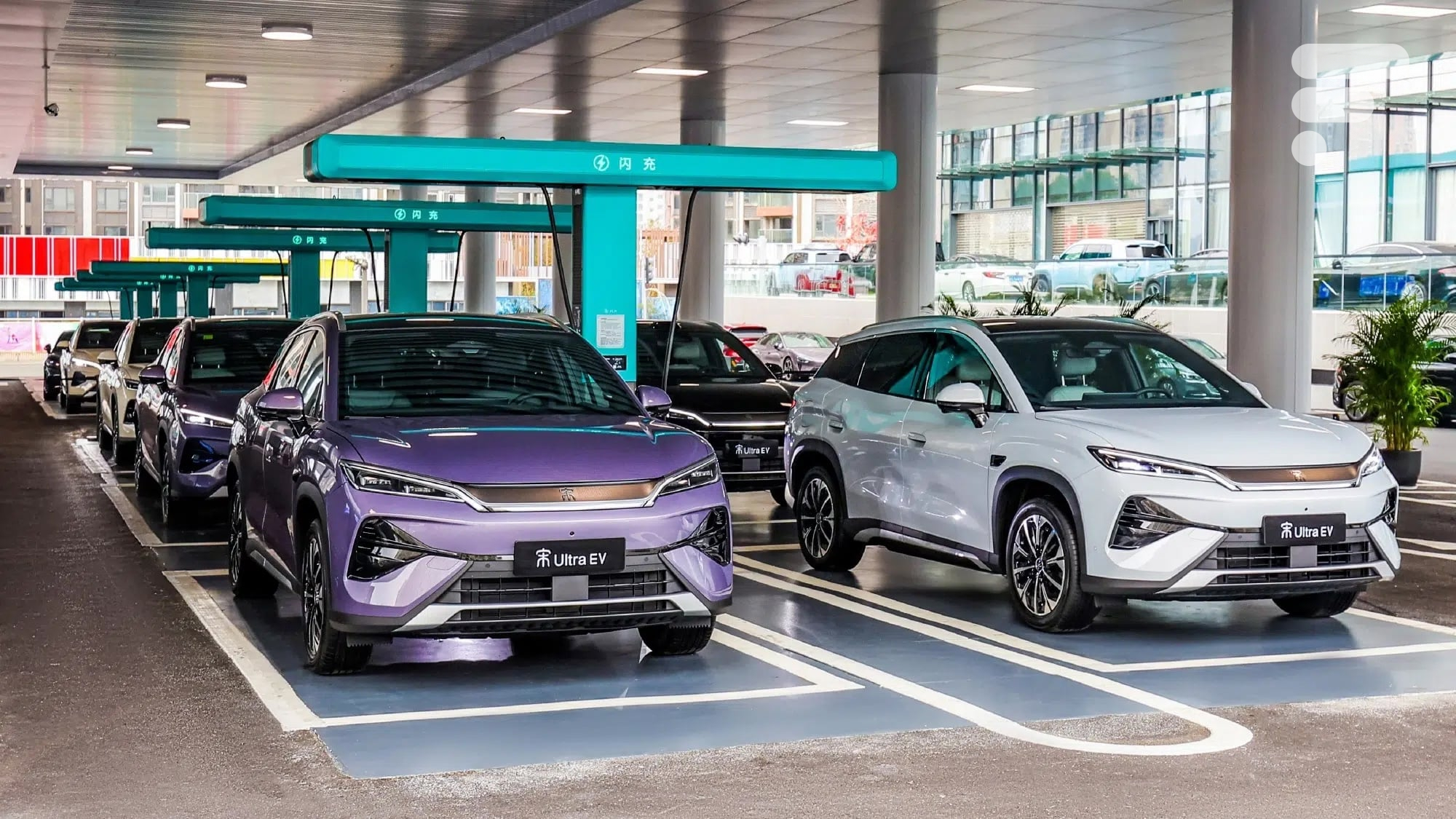 Les Song Ultra EV aux bornes Flash Charge de BYD en Chine. // Source : BYD