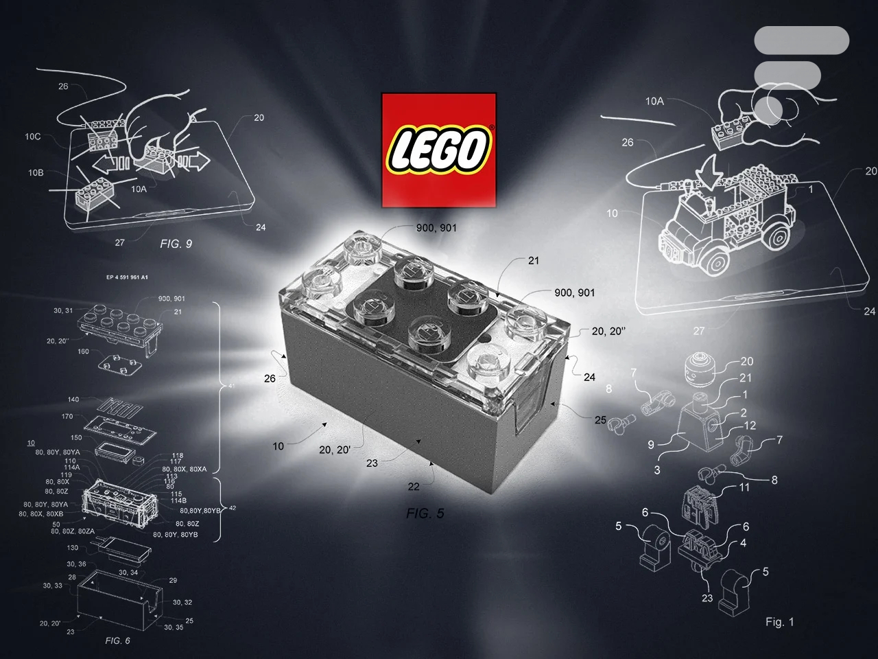 Au centre de tout se trouve la Smart Brick. Visuellement, c’est une brique de 2×4 tenons, un format standard. Cependant, l’ingénierie à l’intérieur est dense. Les brevets (notamment le EP4591961A1) décrivent un appareil autonome intégrant un processeur, une batterie, un haut-parleur, un microphone et un système d’éclairage LED.