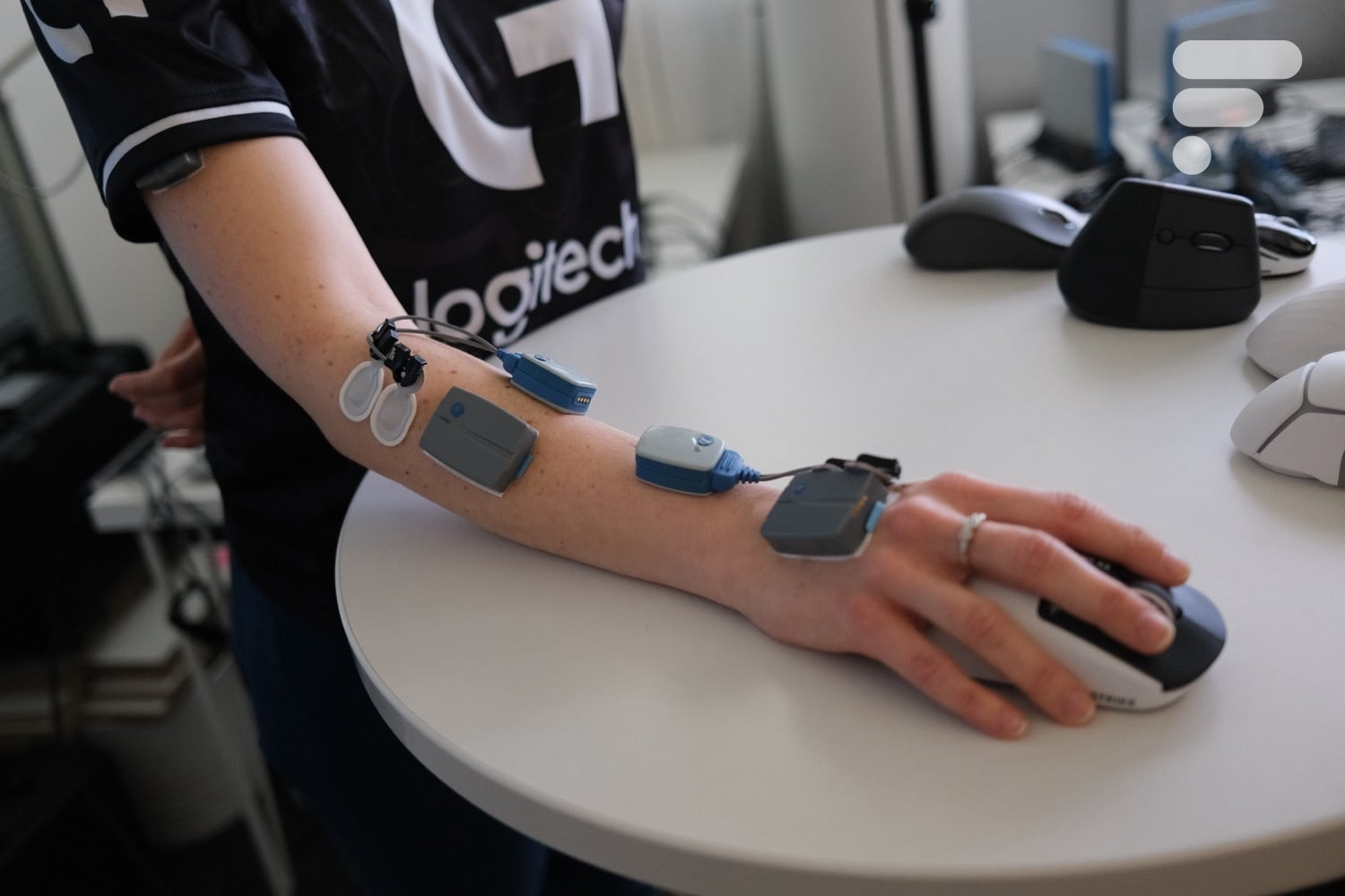 Pour valider certains designs, Logitech équipe ses cobayes de capteurs de pression et de posture. L’objectif est de mesurer les pics de pression sur les muscles du bras, en particulier au niveau du canal carpien, où la peau est fine et les nerfs exposés. Cette approche scientifique détermine si une souris doit être verticale, compacte ou large, en fonction du profil de l’utilisateur.