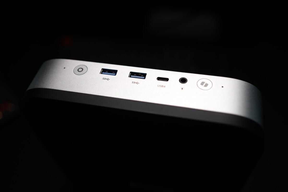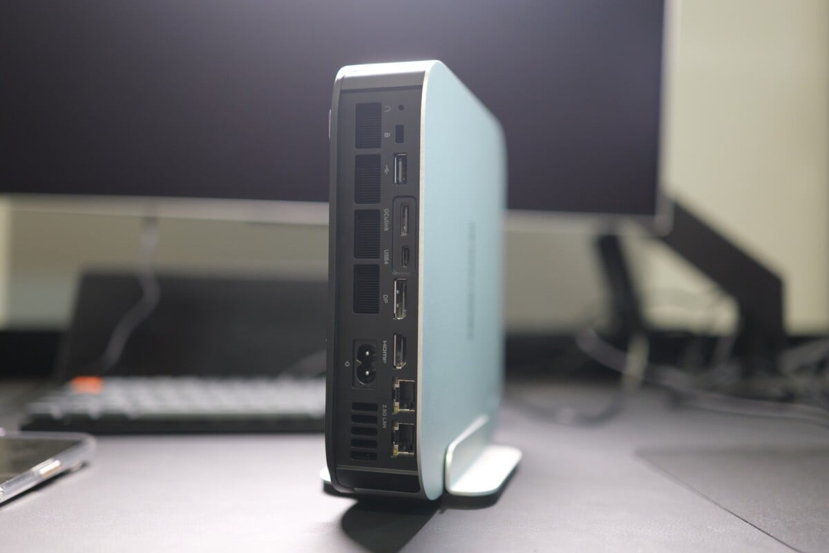 Le port OCuLink mérite une mention particulière. Il s’agit de la connectique en vogue pour les eGPU, offrant une bande passante supérieure à celle du Thunderbolt 4 pour le gaming. En utilisant le dock DEG1 de la marque, ce Mini PC peut devenir un véritable monstre de gaming 4K.