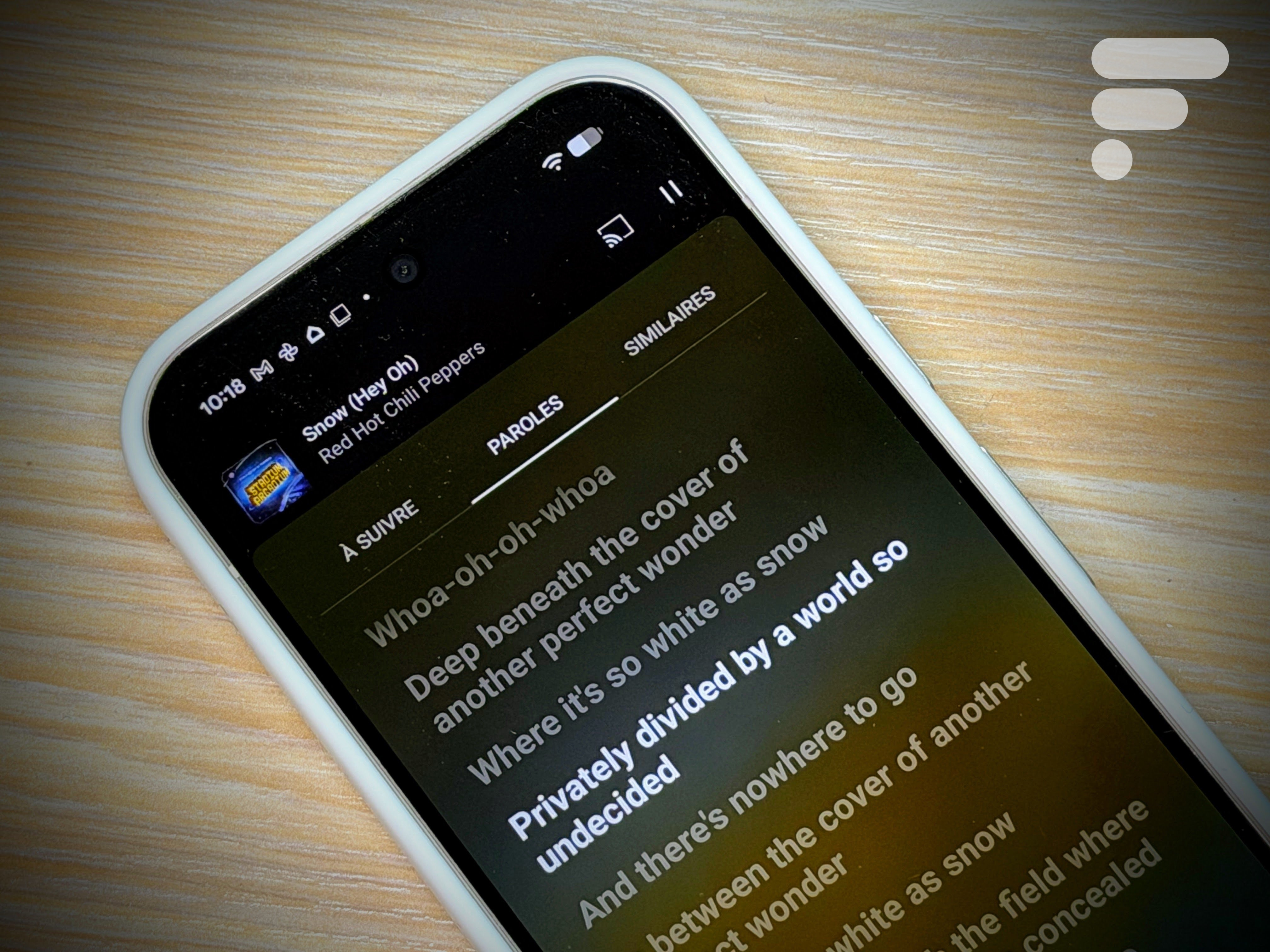 Cette fonctionnalité est utile pour suivre le titre en cours de lecture en même temps, sachant qu’un nouveau « swipe » vers le haut permet d’afficher la liste en plein écran si nécessaire.