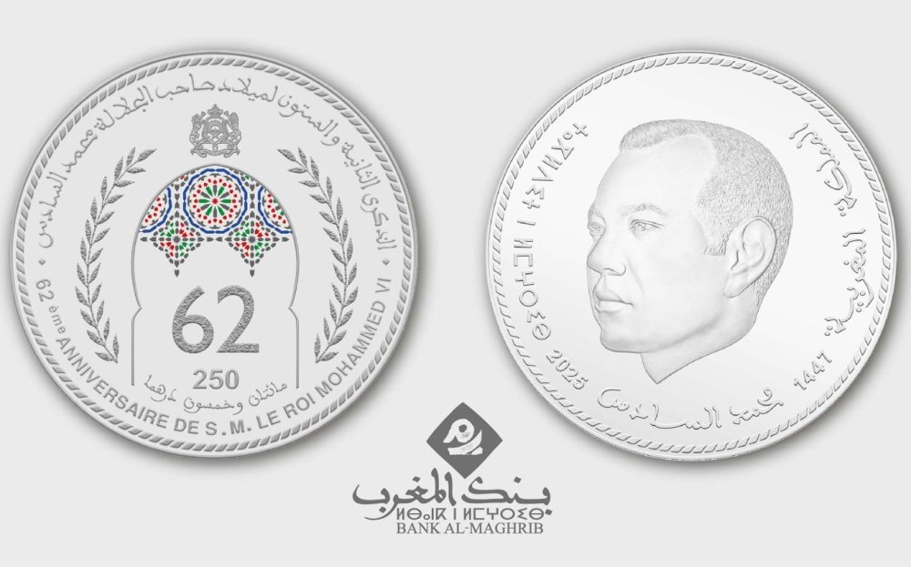 Bank Al-Maghrib émet une pièce commémorative du 62ème Anniversaire de S.M. le Roi