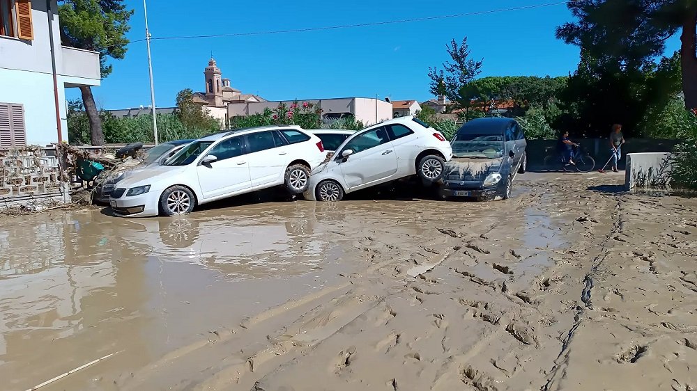 « La tempête violente qui a frappé l’Emilie-Romagne est une véritable supercellule maritime. Elle a déversé un total de 74 mm de précipitations, dont 30 à 50 mm en une vingtaine de minutes, ainsi que des rafales de vent sur la côte, dépassant les 100 km/h, et de la grêle », a fait savoir l’administration municipale de Rimini.