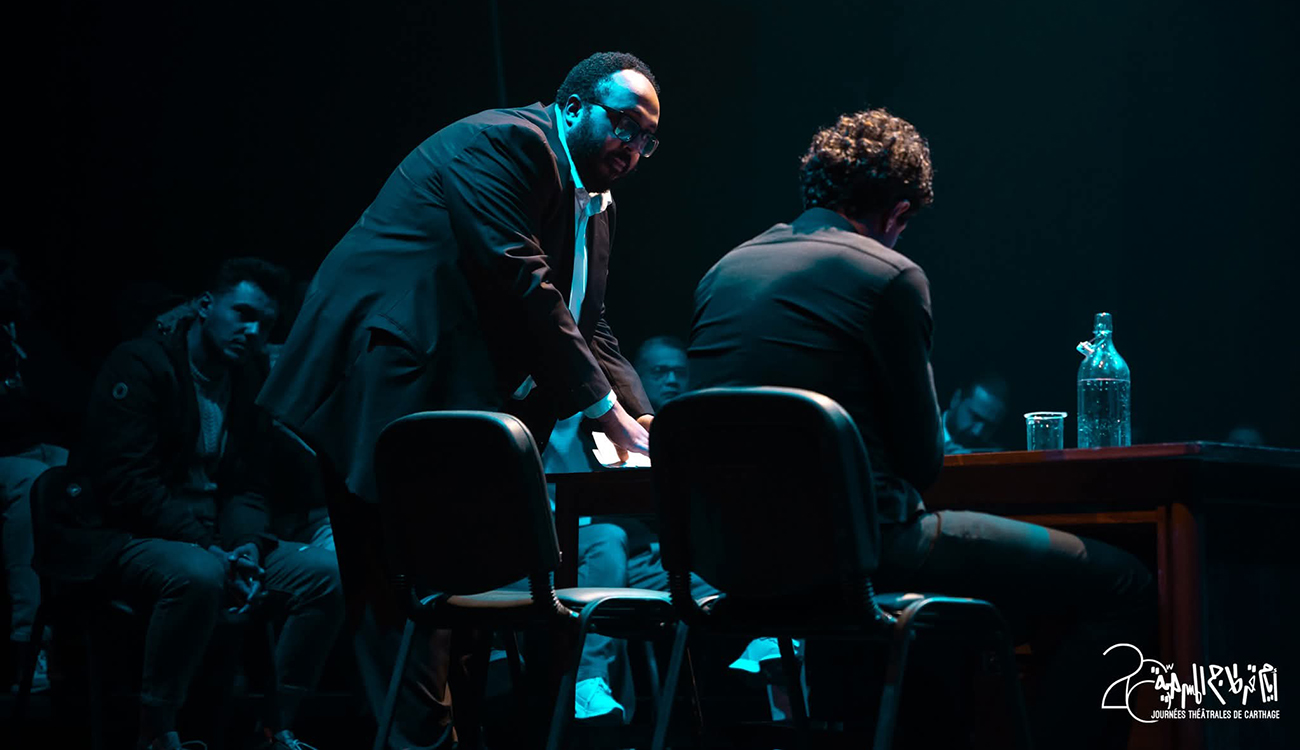 Sur une scène conçue par Ahmed Alaâ Ali, transformée en salle d’audience — avec une partie du public jouant les jurés de chaque côté du plateau —, les comédiens Amrou Othman, Mustapha Asker, Hani Tombari, Ahmed Abou Zid, Hassan Khaled, Souzi Chikh, Baha Tombari, Saïd Kabil, Ismail Ahmed et Adem Ouahdane ont présenté cette lecture égyptienne (en arabe classique) du texte américain.
