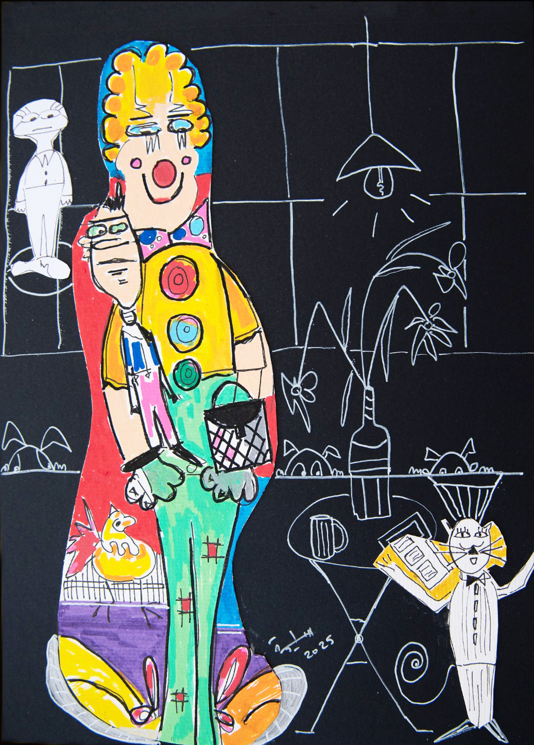 À travers une écriture automatique et un graphisme foisonnant, Selima Triaa déploie un univers peuplé de figures fantastiques et ludiques, où affleure une part d’enfance revendiquée.